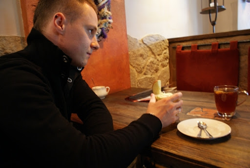 Wczoraj miałam okazję uczestniczyć (hmm, czy to w ogóle dobre słowo?) w Dniach Herbaty 2010, o których wspomniałam kilka postów wcześniej. Wystarczyło znaleźć knajpkę , która bierze udział w tym wydarzeniu, a dodam, że jest ich naprawdę sporo (wyszukiwarka lokali tu). Reszta polegała po prostu na tym, że ze specjalnego herbacianego menu Dilmah wybraliśmy najbardziej opowiadające nam smaki herbat- ja zdecydowałam się na czekoladowo-imbirową, Jacek na jabłkową z kawałkami owoców i miodem. Do tej pory nie spotkałam się jeszcze z tak ciekawym połączeniem herbaty z innymi składnikami:) Wybór smaków był niemały, można było także postawić na jakąś z dodatkiem alkoholu:) Jeśli jesteście miłośnikami herbat, to jest to na pewno coś dla Was:) My spędziliśmy bardzo miło południe;)