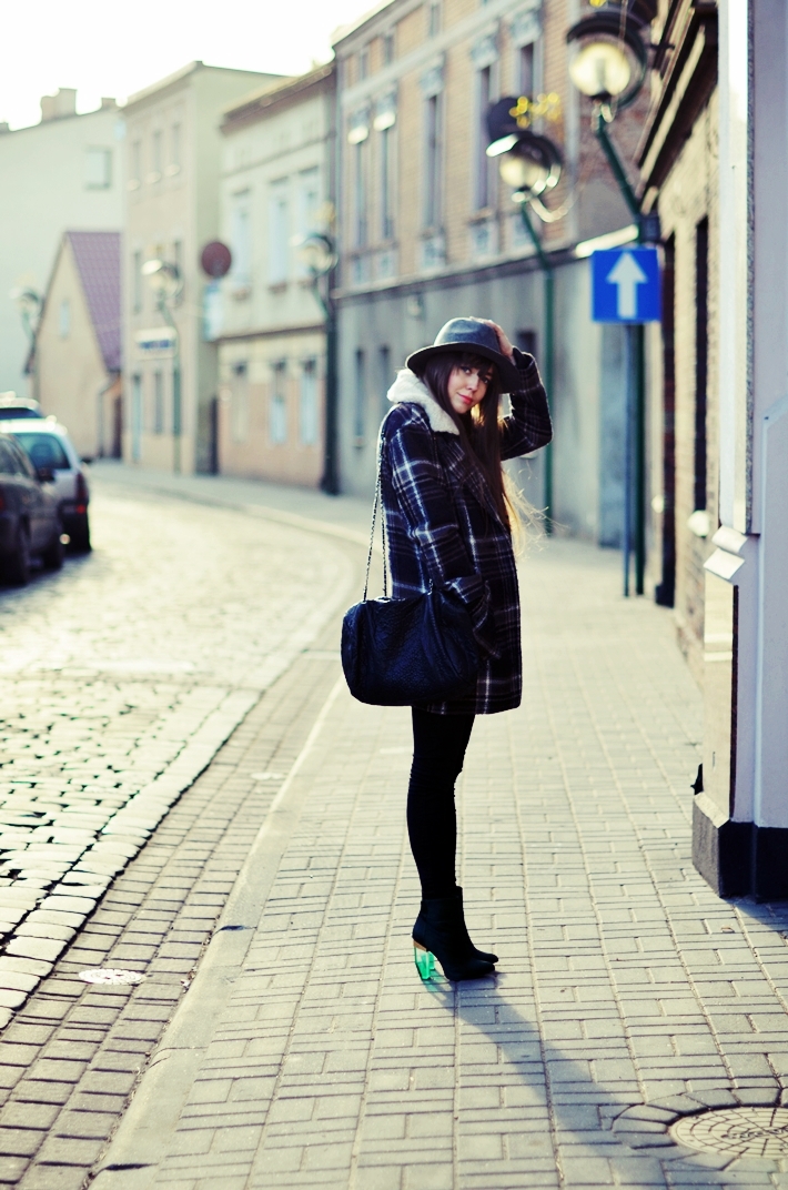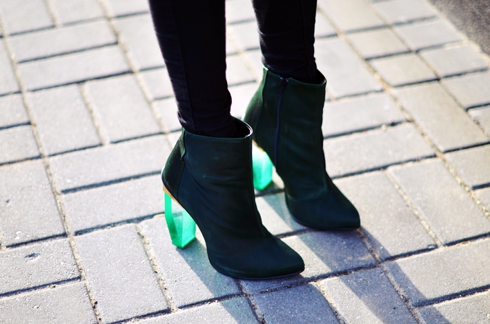 Christmas flew so(h)o(h)o(h)o fast. I hope that you spent your Christmas break in peace and joy with the nearest and the dearest, and your computer was switched on only occasionally :) Today’s set of clothes would be the most ordinary, if it weren’t for these unusual shoes! :) The boots with heels resembling crystal are the real exotic in my wardrobe. Although the heel is like out of space, the shoes themselves are simple that’s why they fit in my style. This time they are presented in ordinary, every-day set; however, they are great alternative for traditional stilettos and go great with e.g. elegant dresses.